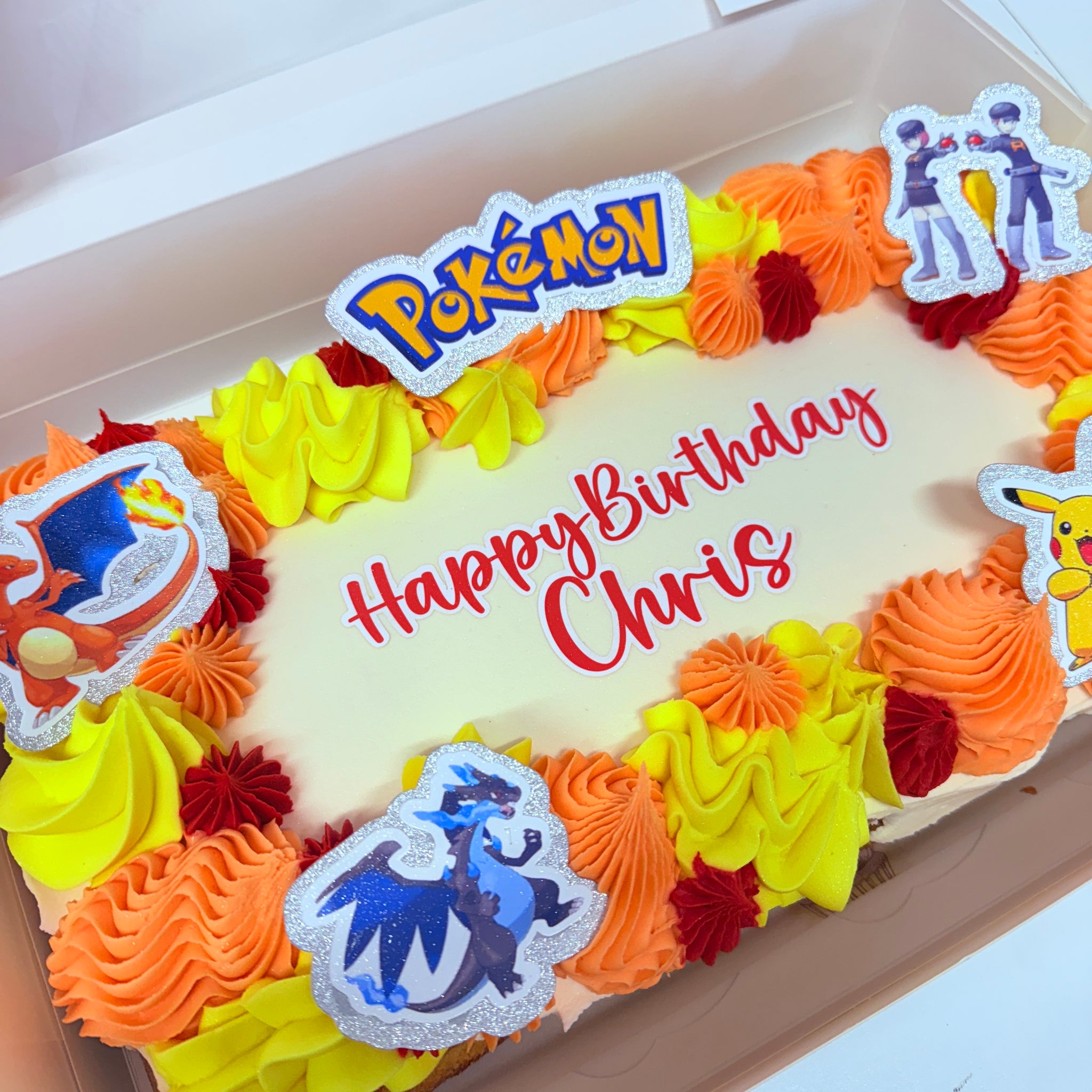 A delicious traybake perfect for themed celebrations! Made with vanilla sponge and finished with smooth vanilla icing in colours that match your chosen theme. The traybake is beautifully decorated with in-house designed card toppers to bring your theme to life.